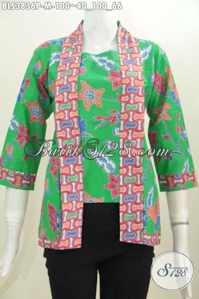 Blus Batik Trendy Warna Hijau Desain Kutubaru Berkelas Berpadu Aksen Cantik Yang Bikin Penampilan Makin Trendy, Proses Printing Asli Solo [BLS3836P-M]