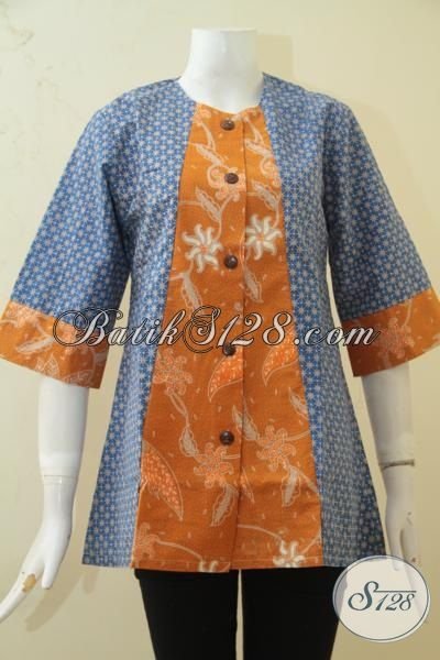 Blus Batik Ukuran L, Batik Kerja Wanita Karir Lengan Tiga Perempat, Batik Solo Kombinasi Tulis Motif Trendy Cewek Terlihat Makin Cantik [BLS3369BT-L]