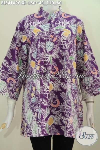 Blus Batik Ungu Kerah Shanghai Desain Istimewa Buatan Solo, Pilihan Tepat Buat Cewek Untuk Terlihat Makin Stylish Dan Berkelas, Bahn Halus Proses Cap Hanya 100 Ribuan [BLS4189C-XL]