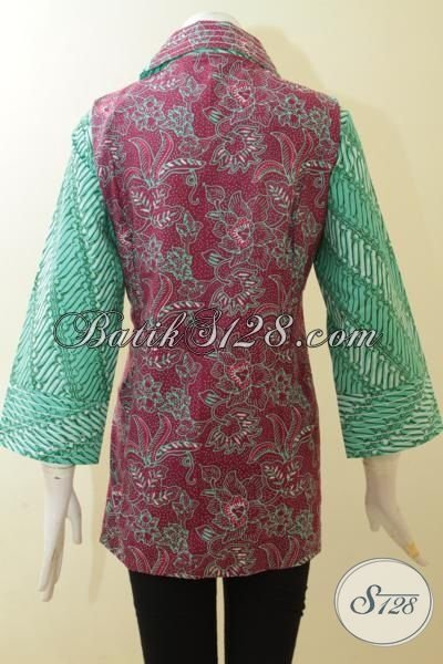 Blus Batik Unik Dua Warna Dua Motif, Pakaian Batik Warna Depan Hijau Belakang Merah, Blus Batik Trendy Khas Wanita Muda [BLS2966CT-XL]