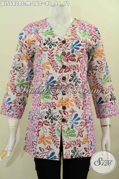 Blus Batik Untuk Kerja, Hadir Dengan Model Kerah V Bahan Halus Proses Cap Kombinasi 2 Motif [BLS6424C-M]