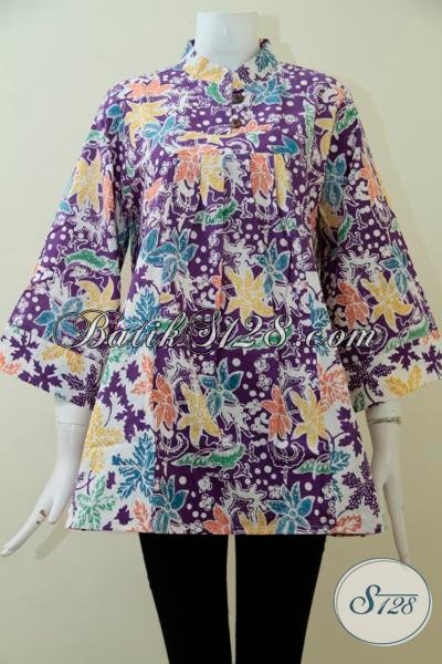 Blus Batik Wanita Dewasa Karir Aktif, Baju Batik Kerja Warna Ungu Motif Modern Yang Bisa Juga Di Pakai Untuk Kondangan [BLS1950C-XL]