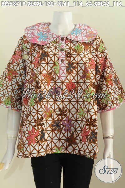 Blus Batik Wanita Dewasa, Pakaian Batik Keren Modis Model Kerah Bulat Motif Terbaru Proses Printing Untuk Penampilan Lebih Gaya [BLS5871P-XL , XXL]