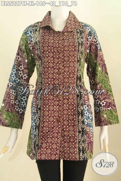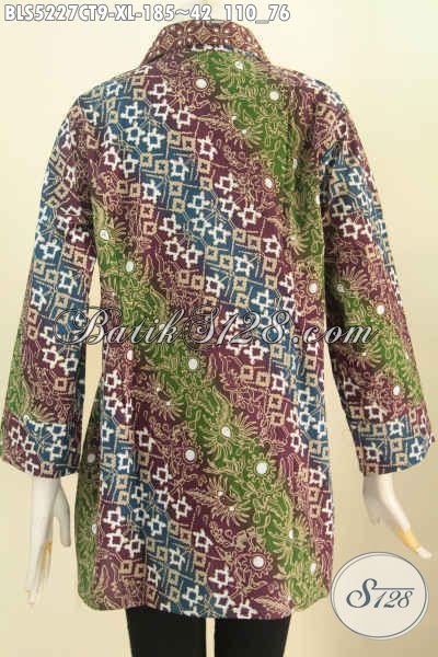Blus Batik Wanita Dewasa, Pakaian Batik Modern Halus Motif Mewah Cap Tulis Desain Kerah Kotak, Elegan Untuk Acara Formal [BLS5227CT-XL]