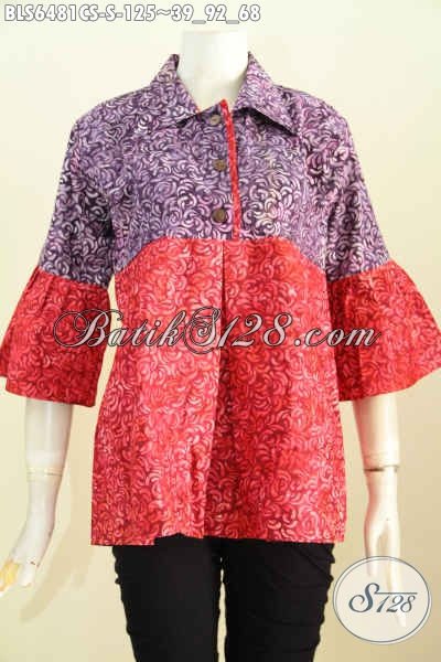 Blus Batik Wanita Muda, Baju Batik Cap Smoke Kombinasi Dua Warna Bahan Adem Model Kerah Lancip Cocok Untuk Pakaian Kerja [BLS6481CS-S]