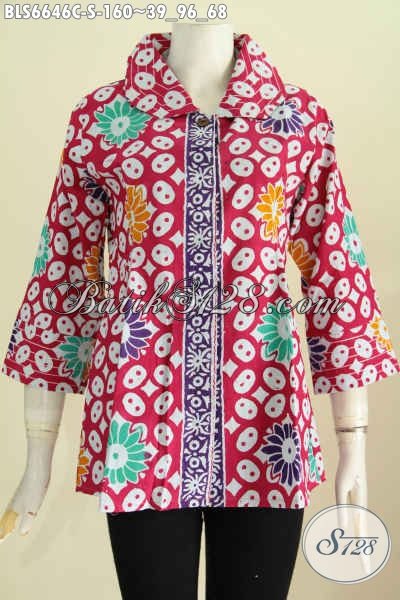 Blus Batik Wanita Muda Masa Kini, Pakaian Batik Desain Benang Besar Bahan Halus Motif Keren Proses Cap Tulis Berpadu Warna Trendy Tampil Lebih Kece [BLS6646CT-S]