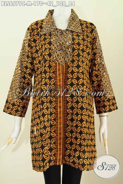 Blus Batik Wanita Muda, Pakaian Batik Elegan Motif Klasik Warna Soga Proses Cap Model Kerah Lancip Nan Istimewa [BLS6579C-M]