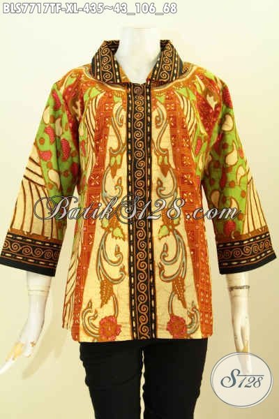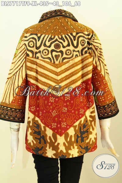 Blus Batik Wanita Ukuran XL, Pakaian Batik Elegan Mewah Proses tulis Motif Sionaran Bahan Adem Kwalitas Istimewa Harga 435K Daleman Full Tricot [BLS7717TF-XL]