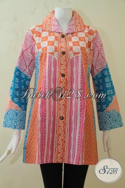 Blus Batik Wanita Warna Paling Keren, Busan Batik Printing Produk Solo Asli, Batik Adem Nyaman Untuk Kerja [BLS3236P-XL]