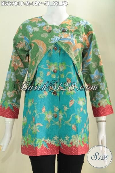 Blus Batik Warna Hijau Kombinasi Biru Dengan Aksesn Merah Keren Banget, Baju Batik Kombinasi Balero Motif Trendy Bahan Halus Proses Print Untuk Tampil Makin Modis [BLS3781P-M]