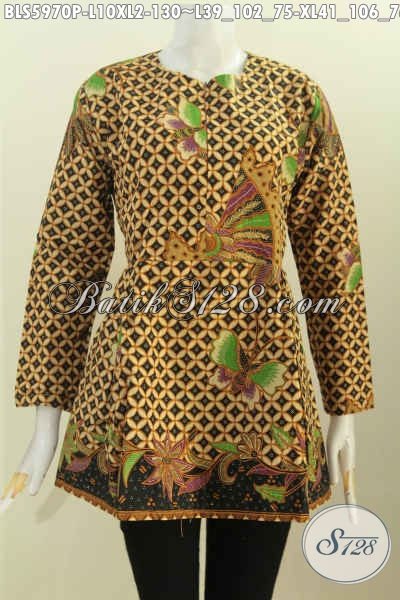 Blus BatikPrinting Klasik Motif Kawung, Berbahan Halus Warna Elegan Model Lengan Panjang Pake Resleting Depan Harga 130K [BLS5970P-L , XL]