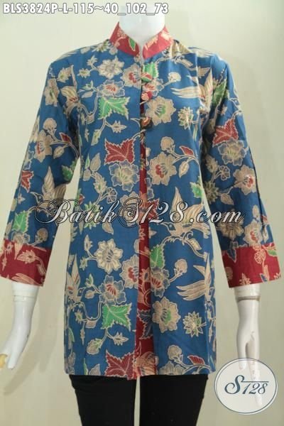 PBlus Blus Pias Kombinasi Biru Dan Merah Motif Bunga Dengan Desain Inovatif Yang Mewah Dan Elegan, Baju Batik Printing Solo Halus Harga Terjangkau [BLS3824P-L]