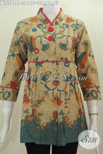 Blus Modern Buatan Solo Kwalitas Bagus Harga Murah, Busana Batik Cewek Kerah Shanghai Plisir Polos Proses Print Modis Dan Mewah [BLS3896P-S]