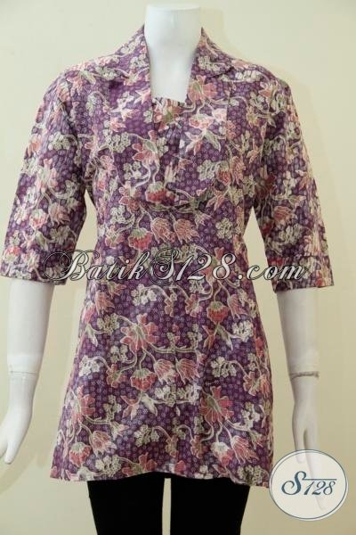 Blus Ungu Berbahan Batik Print Berkwalitas, Baju Batik Motif Bunga-Bunga Dengan Desain Berkelas Dan Harga Yang Terjangkau [BLS1873P-M]