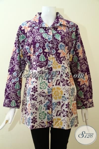 Blus Ungu Motif Trendy Paling Banyak Di Cari Saat Ini, Batik Kerja Proses Cap Kwalitas Halus Harga Terjangkau [BLS2610C-L]