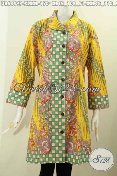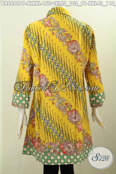 Busana Batik Berkelas Bahan Adem Motif Bagus Proses Printing, Contoh Model Baju Batik Dress Wanita Kerja Untuk Tampil Modis Dan Elegan [DR6889P-XL , XXL]
