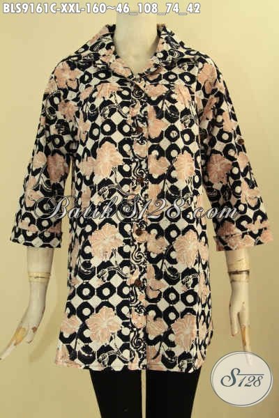 Busana Batik Berkerah Ukuran Jumbo Desain Elegan, Baju Batik Blouse Solo Asli Spesial Untuk Wanita Gemuk, Bisa Untuk Acara Resmi Atau Ngantor [BLS9161C-XXL]