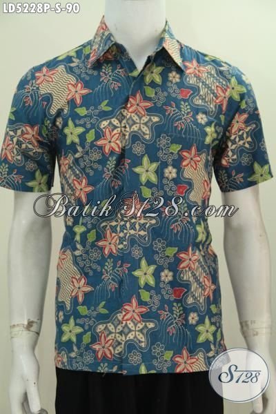 Busana Batik Biru Motif Mewah Proses Printing, Jual Baju Batik Kerja Online Penunjang Penampilan Pria Karir [LD5228P-S]