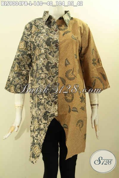 Busana Batik Blouse Istimewa Dengan Kombinasi 2 Warna Dan 2 Motif Model Lengan 3/4 Proses Printing Cabut, Cocok Banget Untuk Kerja Dan Acara Resmi Tampil Elegan [BLS9004PB-L]