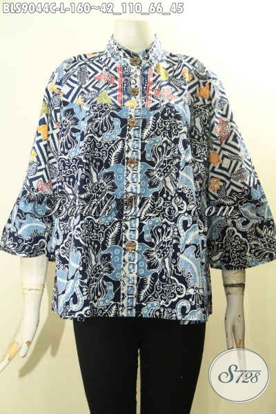 Busana Batik Blouse Solo Untuk Wanita Muda Dan Dewasa Ukuran L, Pakaian Batik Cantik Desain Trendy Kerah Shanghai Lengan Panjang 7/8 Berpadu Motif Keren Proses Cap, Penampilan Makin Gaya Serta Mempesona [BLS9044C-L]