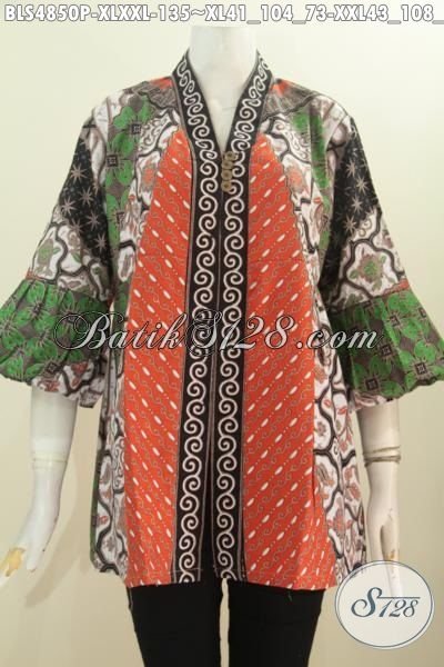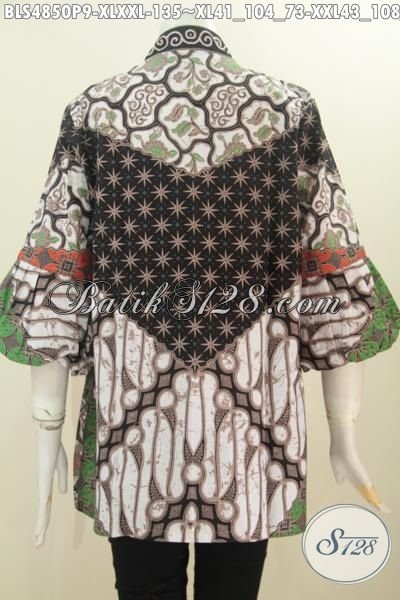 Busana Batik Blus Berkelas Model Kerah Kartini Motif Sinaran Berbahan Adem Proses Printing, Baju Batik wanita Dewasa Untuk Penampilan Lebih Istimewa [BLS4850P-XL , XXL]