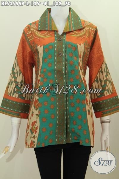 Busana Batik Blus Kwalitas Bagus Harga Murah, Produk Pakaian Batik Perempuan Karir Desain Kerah Kotak Dengan Motif Klasik Proses Print Di Jual Online 135K [BLS4566P-L]