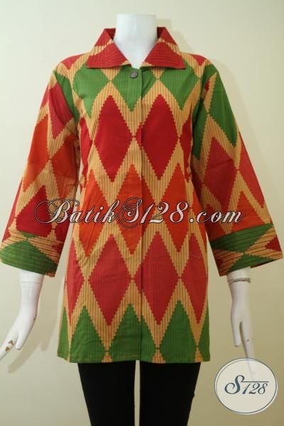 Busana Batik Blus Print Buatan Solo Kwalitas Halus Adem Harga Murmer, Baju Batik Size Jumbo Untuk Wanita Gemuk [BLS2433P-XXL]