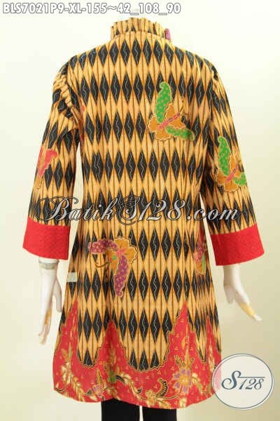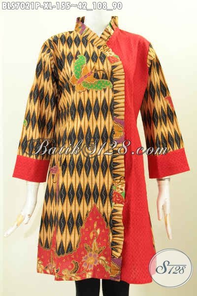 Busana Batik Cewek Dewasa, Baju Batik Atasan Wanita Kerja, Hadir Dengan Desain Berkelas Motif Printing Paduan Kan Embos Untuk Penampilan Lebih Trendy [BLS7021P-XL]