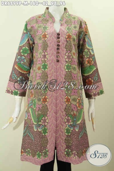 Busana Batik Cewek Terkini, Foto Baju Batik Kerja Wanita Desain Mewah Motif Bagus Proses Printing Pake Kancing Banyak, Cocok Buat Ke Kantor [DR6899P-M]