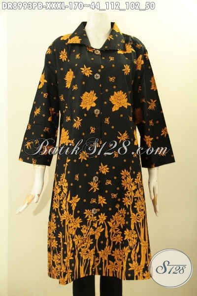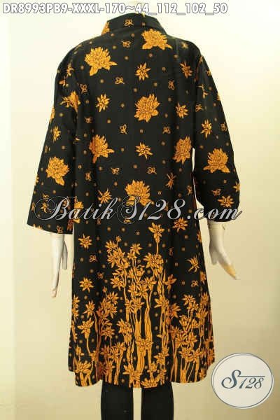 Busana Batik Dress Solo Spesial Untuk Wanita Gemuk Sekali, Pakaian Batik Modern Desain Trendy Motif Elegan Proses Printing Cabut, Istimewa Untuk Acara Formal Maupun Santai [DR8993PB-XXXL]