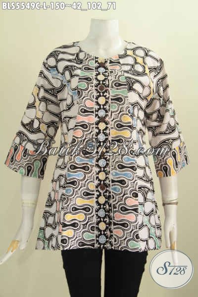 Busana Batik Dua Warna, Baju Batik Modern Khas Jawa Tengah Model Tanpa Kerah Buat Wanita Muda Dan Dewasa Tampil Beda [BLS5549C-L]