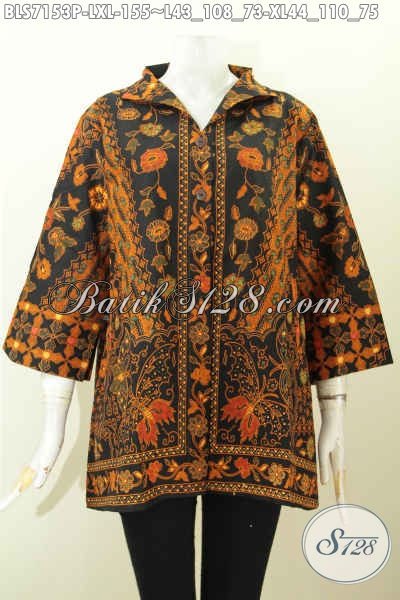 Busana Batik Elegan Bahan Halus Motif Dan Warna Klasik Model Kerah Langsung Pake Saku Kanan Kiri, Baju Batik Wanita Bekerja Untuk Tampil Cantik Dan Anggun [BLS7153P-L , XL]