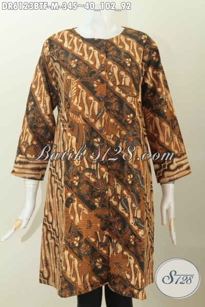 Busana Batik Elegan Berkelas Model Tanpa Krah, Berbahan Halus Kombinasi 2 Motif Daleman Pake Furing Harga 345K [DR6123BTF-M]