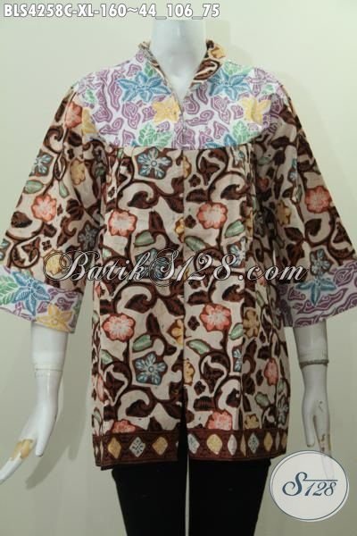 Busana Batik Elegan Dual Motif Trend Mode Terkini, Pakaian Batik Jawa Tengah Halus Proses Cap Spesial Untuk Perempuan Dewasa [BLS4258C-XL]