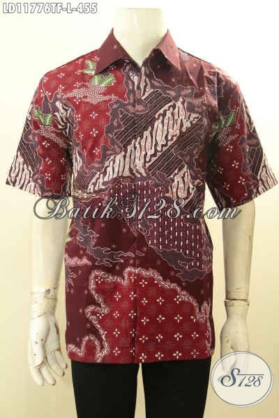 Busana Batik Elegan Nan Mewah Model Lengan Pendek, Kemeja Batik Tulis Pria Full Furing Khas Jawa Tengah, Bisa Untuk Kondangan Dan Ngantor [LD11776TF-L]