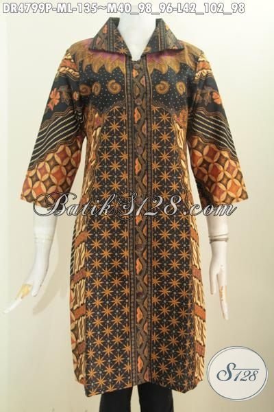 Busana Batik Elegan Untuk Acara Formal, Baju Batik Seragam Kerja Berkelas Model Kerah Kotak Lancip Motif Klasik Proses Printing Tampil Terlihat Berkelas [BLS4799P-M , L]
