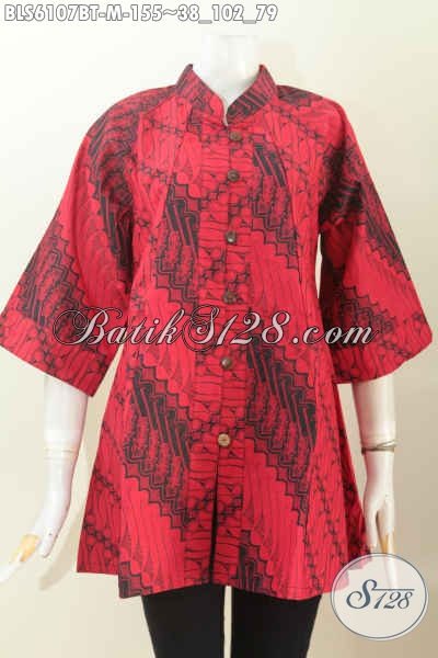 Busana Batik Elegan Warna Monokrom Merah Hitam, Blus Batik Modis Kerah Shanghai Lengan 3/4 Untuk Wanita yang Ingin Tampil Beda [BLS6107BT-M]