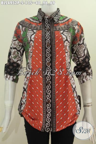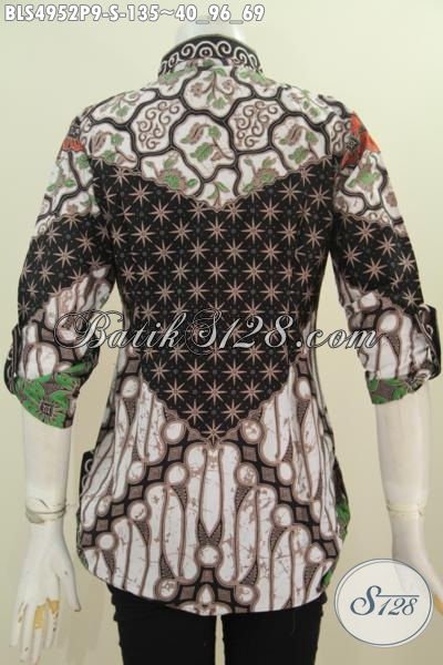 Busana Batik Formal Wanita Muda, Produk Baju Batik Cewek Model Kerah Dengan Lengan Tujuh Perdelapan Motif Sinaran Proses Printing Bikin Wanita Terlihat Sempurna [BLS4952P-S]