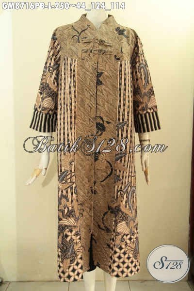 Busana Batik Gamsi Motif Kombinasi, Pakaian Batik ELegan Spesial Untuk Wanita Berhijab Tampil Lebih Anggun Mempesona Di Lengkapi Kancing Depan [GM8716PB-L]