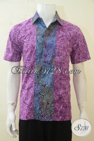 Busana Batik Gaul, Hem Batik Ungu Kombinasi Warna Gradasi, batik Cap Smoke Membuat Pria Lebih Menawan [LD4233CS-M , XL]