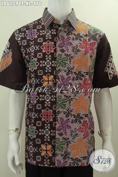 Busana Batik Halus Bahan Adem Motif Kombinasi, Baju Batik Hem Lengan Pendek Cap Tulis Untuk Pria Dewasa Tampil Keren Dan Gaya [LD6129CT-XL]