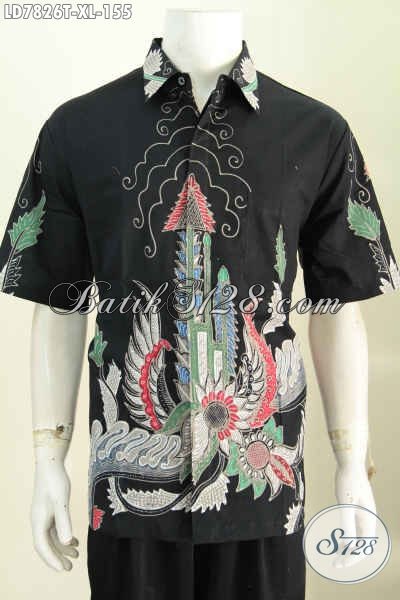 Busana Batik Hitam Lengan Pendek Motif Bagus Dan Keren, Kemeja Batik Solo Istimewa Size XL Bahan Adem Harga 150 Ribuan Proses Tulis [LD7826T-XL]