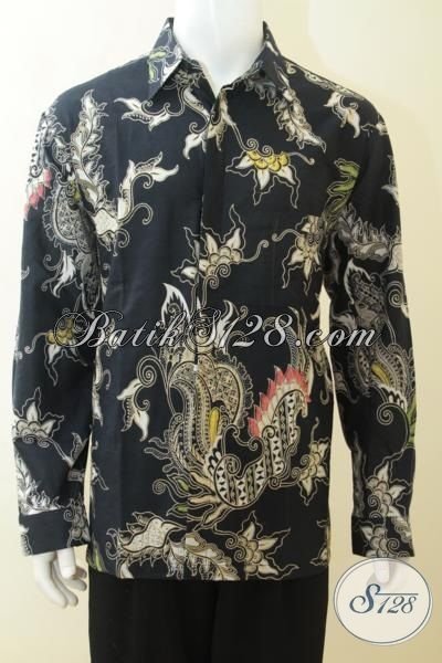 Busana Batik Hitam Tampil Berkelas, Hem Batik Halus Lengan Panjang Proses Kombinasi Tulis, Baju Kerja Batik Terbaru Trend 2015 [LP4110BT-XL]