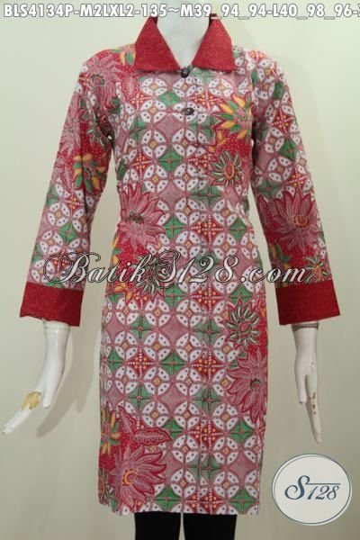 Busana Batik Jawa Halus Buat Wanita Modern, Baju Blus Batik Berkelas Motif Trendy Berbahan Katun Halus Kombinasi Lengan Dan Kerah Bahan Embos Cocok Buat Ke Kantor [BLS4134P-M , L , XL]