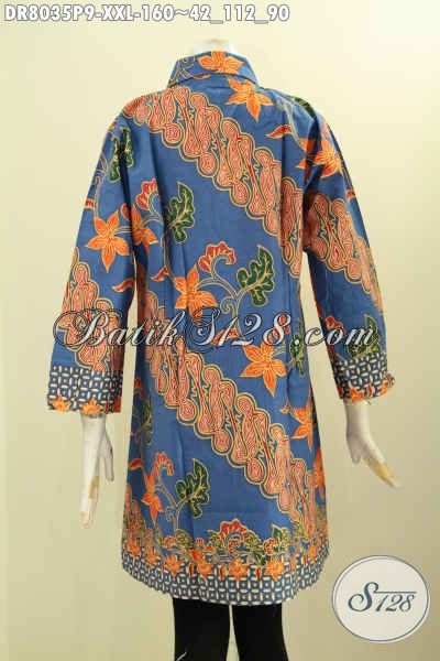 Busana Batik Jumbo, Dress Krah Miring Motif Modern Klasik Bahan Halus Proses Printing, Pas Untuk Seragam Kerja Tampil Terlihat Beda [DR8035P-XXL]