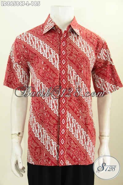 Busana Batik Keren Dan Elegan Motif Klasik Cap Tulis Warna Merah Model Lengan Pendek, Bikin Lelaki Terlihat Ganteng Maksimal [LD8658CT-L]