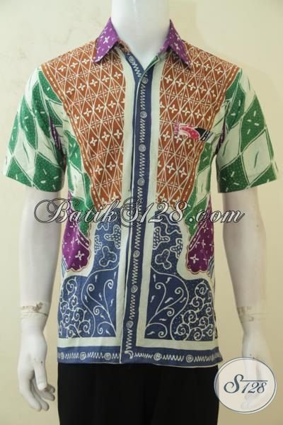 Busana Batik Keren Dengan Desain Motif Klasik Berpadu Warna Yang Atraktif, Cocok Untuk Pria Muda Dan Dewasa, Baju Batik Tulis Halus Produk Solo Jawa Tengah [LD4203T-M]