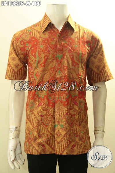 Busana Batik Kerja Pria Lengan Pendek Buatan Solo Asli, Kemeja Batik Halus Motif Berkelas Proses Printing, Tampil Tampan Berwibawa [LD11835P-M]