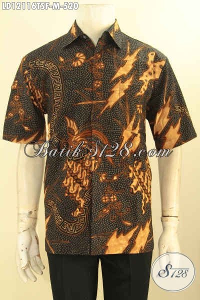 Busana Batik Kerja Pria Lengan Pendek Premium Tulis Soga Desain Kekinian, Pakaian Batik Modern Mewah Dengan Lapisan Furing, Pilihan Terbaik Untuk Tampil Istimewa [LD12116TSF-M]