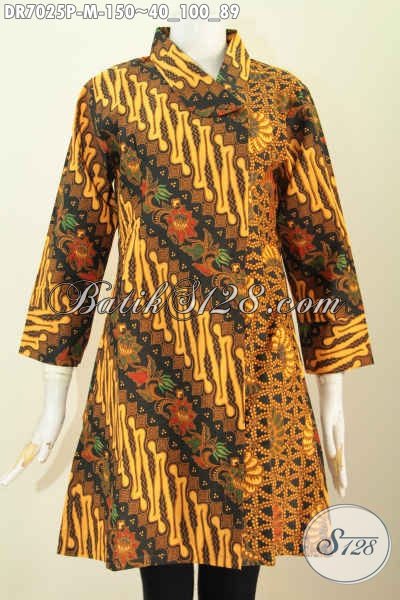 Busana Batik Kerja Wanita Muda, Baju Batik Wanita Trend 2017, Hadir Dengan Motif Klasik Dan Kerah Miring Proses Printing Harga Hanya 150K [DR7025P-M]